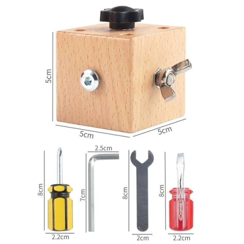 Cubo juguetes de herramientas madera montessori sensorial