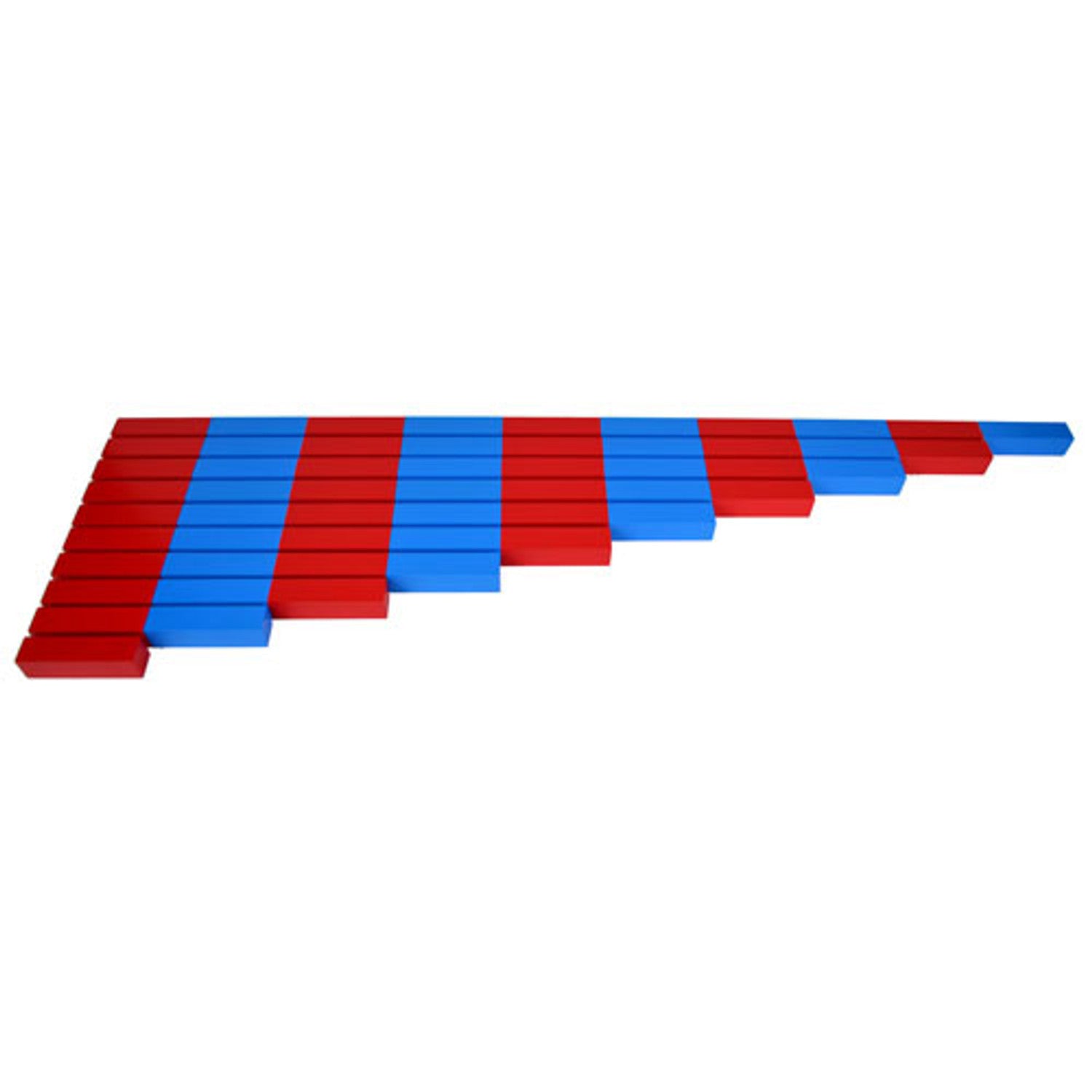 Este material de la metodología Montessori es perfecto para enseñar a los niños el concepto de longitud, al tener piezas que son cada vez más cortas disminuyendo en tramos de 10 centímetros.