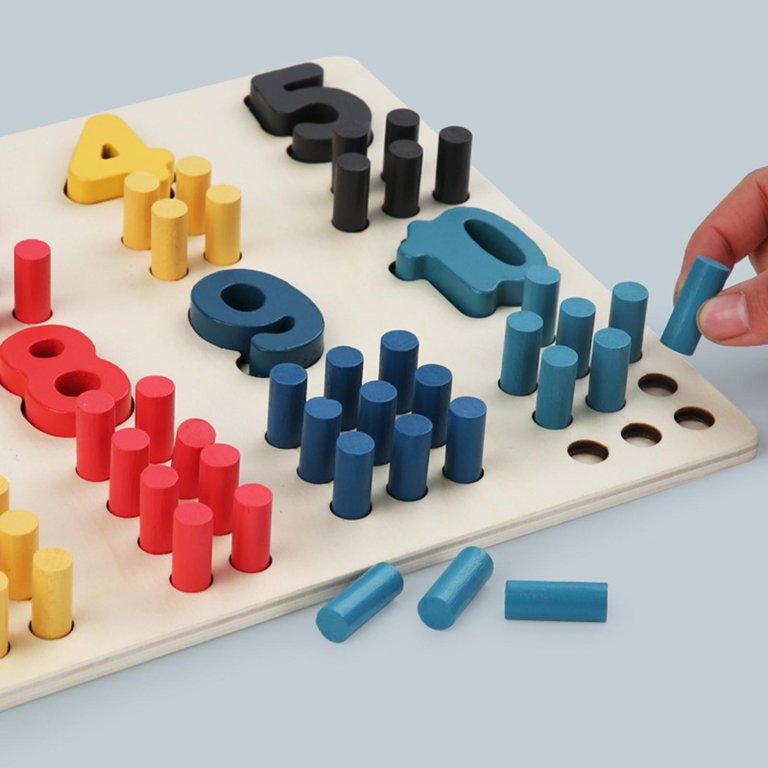 Por ejemplo, los niños pueden practicar el conteo insertando una clavija en cada agujero secuencialmente mientras cuentan en voz alta. También pueden usar las clavijas para explorar patrones numéricos, como contar de dos en dos o de cinco en cinco, colocando las clavijas en los agujeros correspondientes.