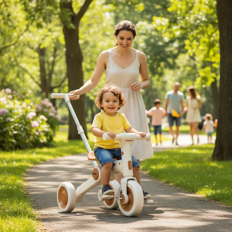 El compañero ideal para cada etapa de tu peque. Este triciclo multifuncional se adapta a su crecimiento y habilidades, pasando de un modo de empuje a un triciclo clásico de pedales. Perfecto para paseos cómodos y seguros mientras desarrolla equilibrio, coordinación y confianza.